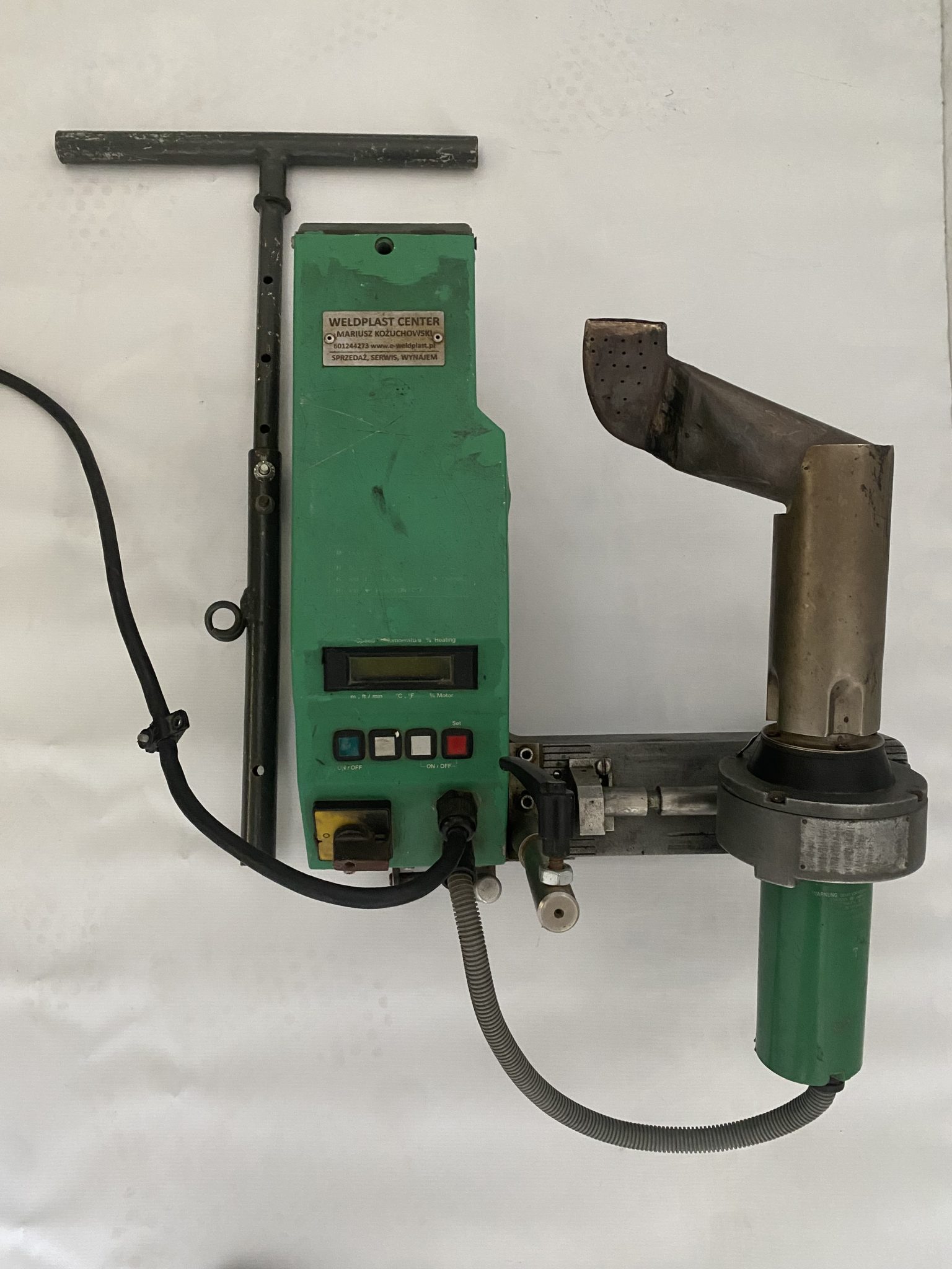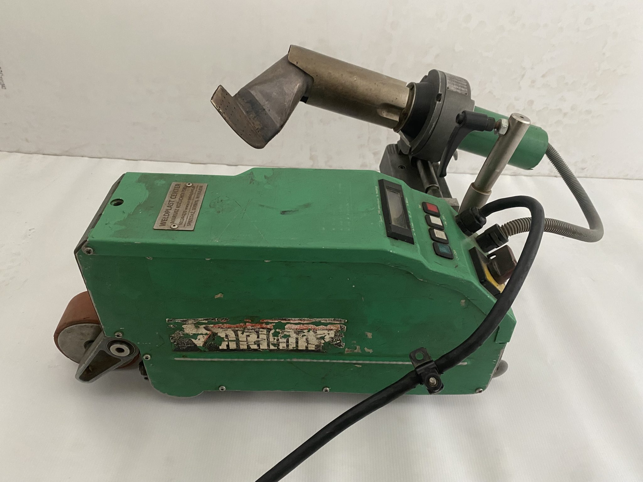 Profesjonalna zgrzewarka Leister Varimat V, w pełni sprawna i gotowa do pracy. Maszyna przeszła serwis w 2024 roku, podczas którego wymieniono grzałkę, termoparę oraz silnik dmuchawy na nowy, co znacznie wydłuża jej żywotność i zwiększa niezawodność.