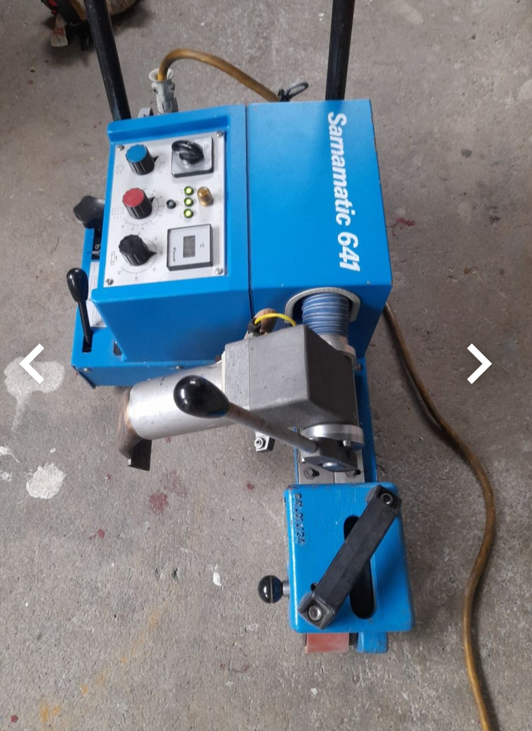 Zgrzewarka Sarnmatic 614 przywieziona ze Szwajcarii, w pe艂ni sprawna i gotowa do natychmiastowej pracy. Urz膮dzenie jest w komplecie z d艂ugim przewodem, oryginaln膮 skrzynk膮 transportow膮 oraz r膮czk膮 prowadz膮c膮, co gwarantuje wygodne u偶ytkowanie zar贸wno w warsztacie, jak i w terenie.